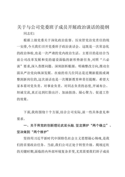 / 【七哥公文】2025年:关于与公司党委班子成员开展政治谈话的提纲+更多免费公文+VX:QiGeGongWen2024