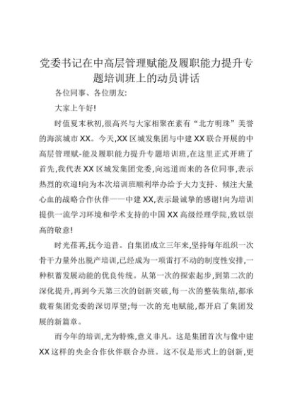 【七哥公文】2025年:党委书记在中高层管理赋能及履职能力提升专题培训班上的动员讲话+更多免费公文+VX:QiGeGongWen2024