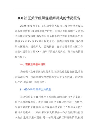 / 【七哥公文】2025年:XX社区关于组织观看阅兵式的情况报告+更多免费公文+VX:QiGeGongWen2024