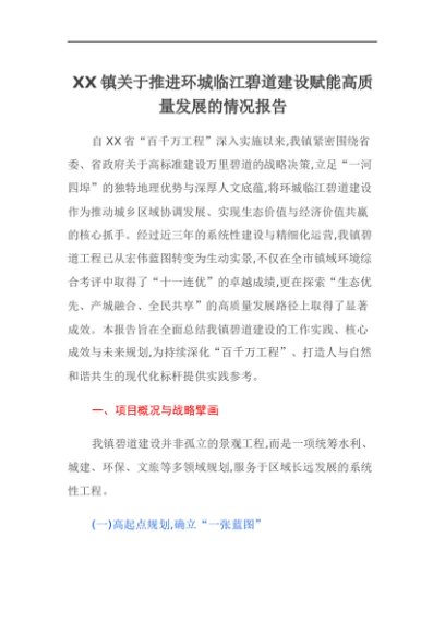 【七哥公文】2025年:XX镇关于推进环城临江碧道建设赋能高质量发展的情况报告+更多免费公文+VX:QiGeGongWen2024