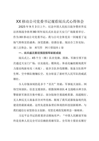 / 【七哥公文】2025年:XX移动公司党委书记观看阅兵式心得体会+更多免费公文+VX:QiGeGongWen2024