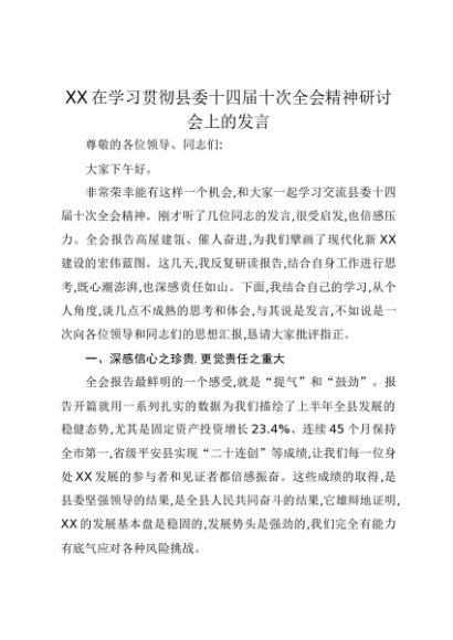 【七哥公文】2025年:XX在学习贯彻县委十四届十次全会精神研讨会上的发言+更多免费公文+VX:QiGeGongWen2024