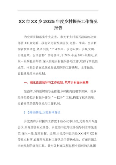 / 【七哥公文】2025年:XX市XX乡2025年度乡村振兴工作情况报告+更多免费公文+VX:QiGeGongWen2024