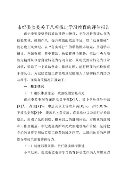 / 【七哥公文】2025年:市纪委监委关于八项规定学习教育的评估报告+更多免费公文+VX:QiGeGongWen2024