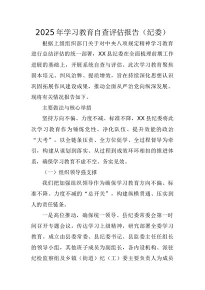 【七哥公文】2025年:2025年贯彻中央八项规定精神学习教育自查评估报告(纪委)+更多免费公文+VX:QiGeGongWen2024