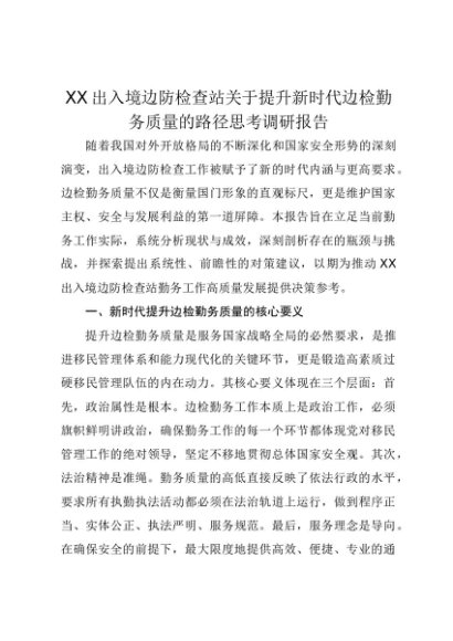 【七哥公文】2025年:XX出入境边防检查站关于提升新时代边检勤务质量的路径思考调研报告+更多免费公文+VX:QiGeGongWen2024