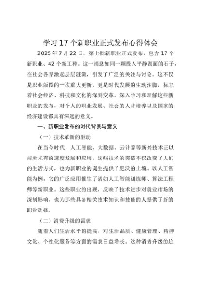 / 【七哥公文】2025年:学习17个新职业正式发布心得体会+更多免费公文+VX:QiGeGongWen2024