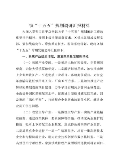 / 【七哥公文】2025年:镇“十五五”规划调研汇报材料+更多免费公文+VX:QiGeGongWen2024