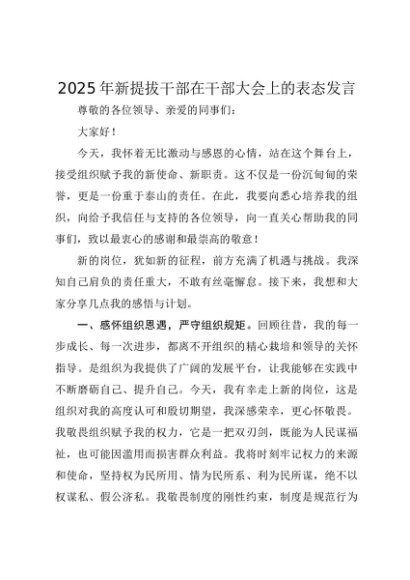 / 【七哥公文】2025年:2025年新提拔干部在干部大会上的表态发言+更多免费公文+VX:QiGeGongWen2024