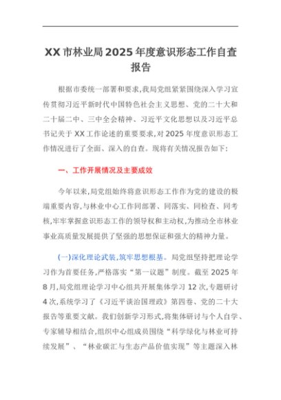 / 【七哥公文】2025年:XX市林业局2025年度意识形态工作自查报告+更多免费公文+VX:QiGeGongWen2024
