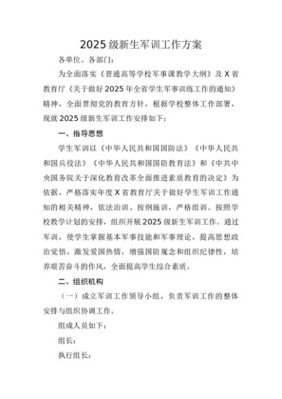 / 【七哥公文】2025年:2025级新生军训工作方案+更多免费公文+VX:QiGeGongWen2024