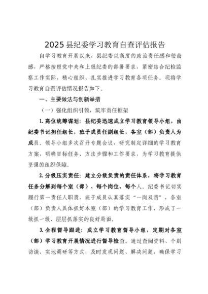 【七哥公文】2025年:2025县纪委贯彻中央八项规定精神学习教育自查评估报告+更多免费公文+VX:QiGeGongWen2024
