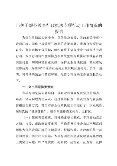 / 【七哥公文】2025年:市关于规范涉企行政执法专项行动工作情况的报告+更多免费公文+VX:QiGeGongWen2024