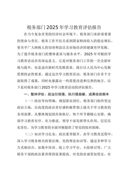 【七哥公文】2025年:税务部门2025年贯彻中央八项规定精神学习教育评估报告+更多免费公文+VX:QiGeGongWen2024
