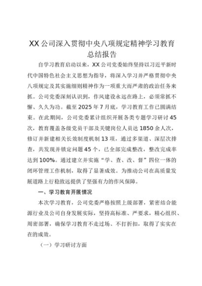 / 【七哥公文】2025年:XX公司深入贯彻中央八项规定精神学习教育总结报告+更多免费公文+VX:QiGeGongWen2024