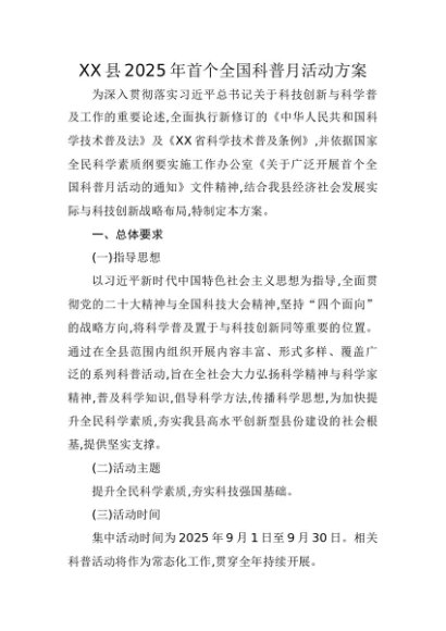 / 【七哥公文】2025年:XX县2025年首个全国科普月活动方案+更多免费公文+VX:QiGeGongWen2024