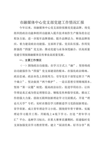 / 【七哥公文】2025年:市融媒体中心党支部党建工作情况汇报+更多免费公文+VX:QiGeGongWen2024