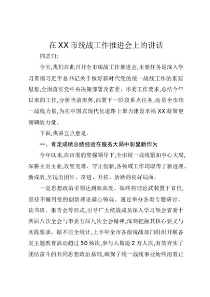 / 【七哥公文】2025年:在XX市统战工作推进会上的讲话+更多免费公文+VX:QiGeGongWen2024