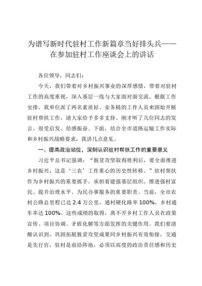 【七哥公文】2025年:为谱写新时代驻村工作新篇章当好排头兵——在参加驻村工作座谈会上的讲话+更多免费公文+VX:QiGeGongWen2024