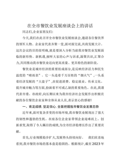 / 【七哥公文】2025年:在全市餐饮业发展座谈会上的讲话+更多免费公文+VX:QiGeGongWen2024