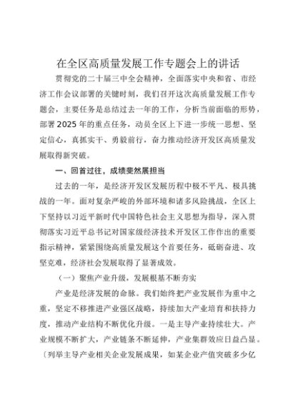 / 【七哥公文】2025年:在全区高质量发展工作专题会上的讲话+更多免费公文+VX:QiGeGongWen2024