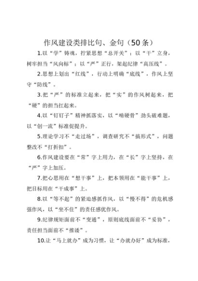 【七哥公文】2025年:作风建设类排比句、金句(50条)+更多免费公文+VX:QiGeGongWen2024
