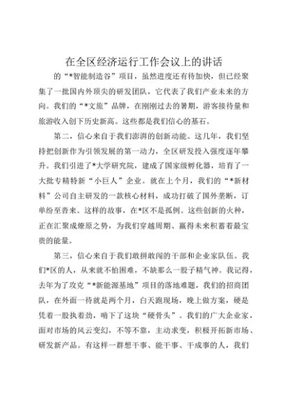 / 【七哥公文】2025年:在全区经济运行工作会议上的讲话+更多免费公文+VX:QiGeGongWen2024