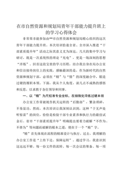【七哥公文】2025年:在市自然资源和规划局青年干部能力提升班上的学习心得体会+更多免费公文+VX:QiGeGongWen2024