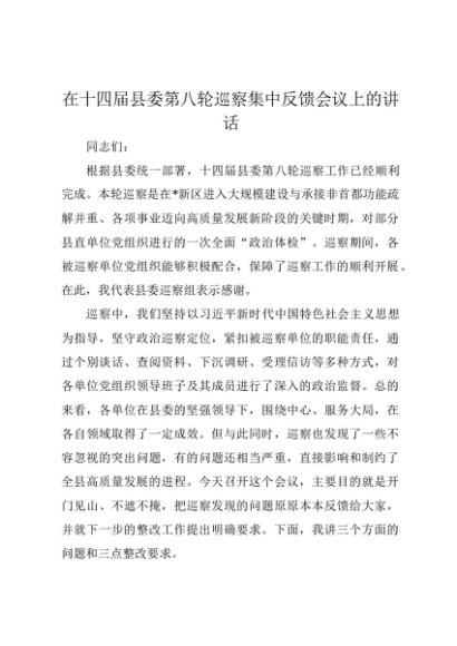 / 【七哥公文】2025年:在十四届县委第八轮巡察集中反馈会议上的讲话+更多免费公文+VX:QiGeGongWen2024