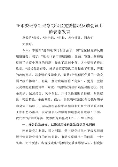 【七哥公文】2025年:在市委巡察组巡察综保区党委情况反馈会议上的表态发言+更多免费公文+VX:QiGeGongWen2024