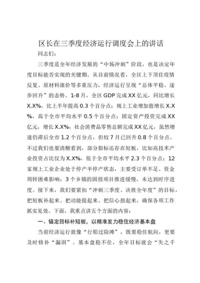 / 【七哥公文】2025年:区长在三季度经济运行调度会上的讲话+更多免费公文+VX:QiGeGongWen2024