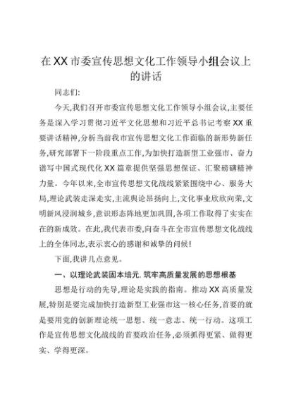 / 【七哥公文】2025年:在XX市委宣传思想文化工作领导小组会议上的讲话+更多免费公文+VX:QiGeGongWen2024