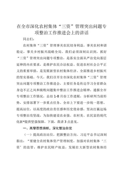 【七哥公文】2025年:在全市深化农村集体“三资”管理突出问题专项整治工作推进会上的讲话+更多免费公文+VX:QiGeGongWen2024