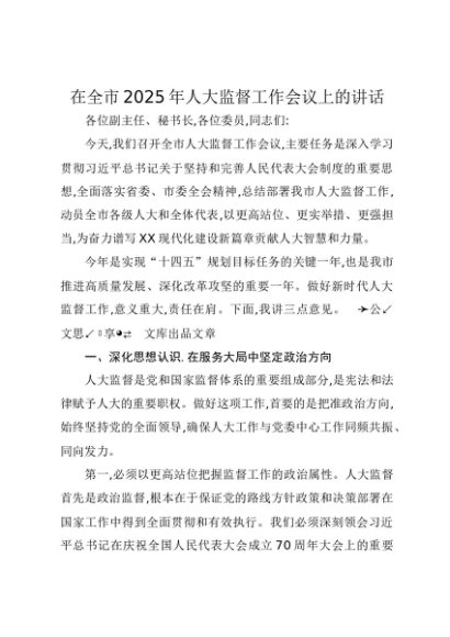 / 【七哥公文】2025年:在全市2025年人大监督工作会议上的讲话+更多免费公文+VX:QiGeGongWen2024