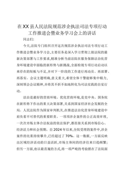 【七哥公文】2025年:在XX县人民法院规范涉企执法司法专项行动工作推进会暨业务学习会上的讲话+更多免费公文+VX:QiGeGongWen2024