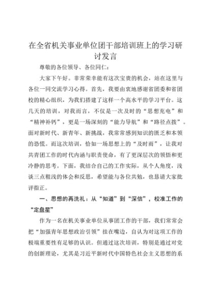 / 【七哥公文】2025年:在全省机关事业单位团干部培训班上的学习研讨发言+更多免费公文+VX:QiGeGongWen2024