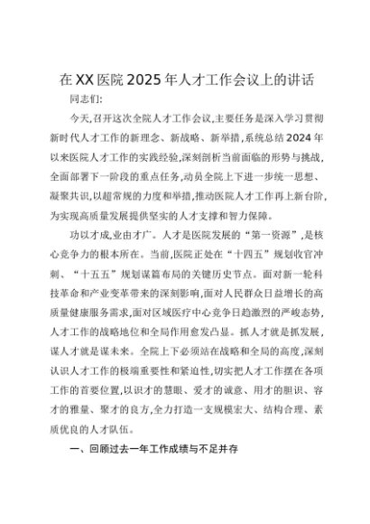 / 【七哥公文】2025年:在XX医院2025年人才工作会议上的讲话+更多免费公文+VX:QiGeGongWen2024