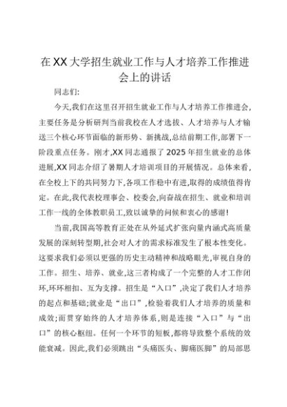 【七哥公文】2025年:在XX大学招生就业工作与人才培养工作推进会上的讲话+更多免费公文+VX:QiGeGongWen2024