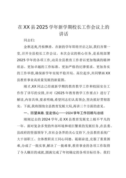 / 【七哥公文】2025年:在XX县2025学年新学期校长工作会议上的讲话+更多免费公文+VX:QiGeGongWen2024