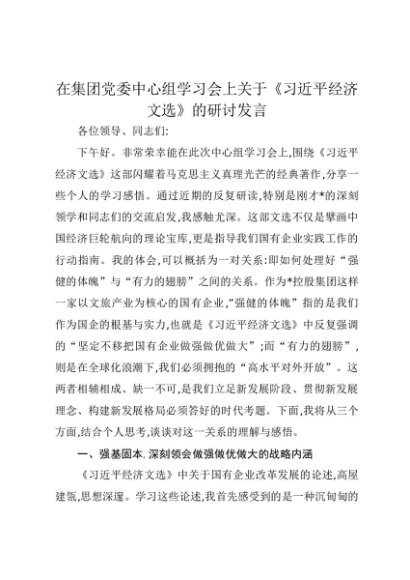 【七哥公文】2025年:在集团党委中心组学习会上关于《习近平经济文选》的研讨发言+更多免费公文+VX:QiGeGongWen2024