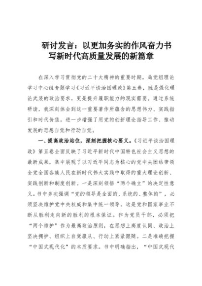 【七哥公文】2025年:研讨发言:以更加务实的作风奋力书写新时代高质量发展的新篇章+更多免费公文+VX:QiGeGongWen2024