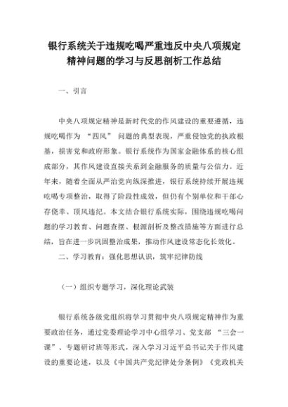 【七哥公文】2025年:银行系统关于违规吃喝严重违反中央八项规定精神问题的学习与反思剖析工作总结+更多免费公文+VX:QiGeGongWen2024
