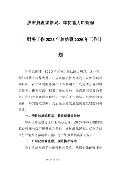 【七哥公文】2025年:财务工作2025年总结暨2026年工作计划:岁末复盘谋新局,年初蓄力启新程+更多免费公文+VX:QiGeGongWen2024