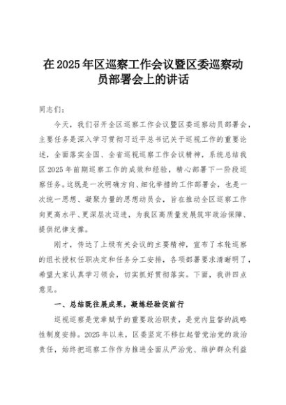 【七哥公文】2025年:在2025年区巡察工作会议暨区委巡察动员部署会上的讲话+更多免费公文+VX:QiGeGongWen2024
