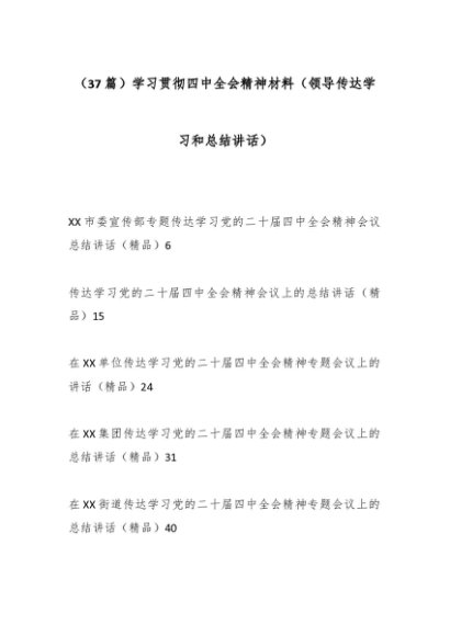 【七哥公文】2025年:(37篇)学习贯彻四中全会精神材料(领导传达学习和总结讲话)+更多免费公文+VX:QiGeGongWen2024