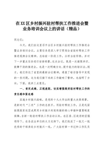 【七哥公文】2025年:在XX区乡村振兴驻村帮扶工作推进会暨业务培训会议上的讲话(精品)+更多免费公文+VX:QiGeGongWen2024