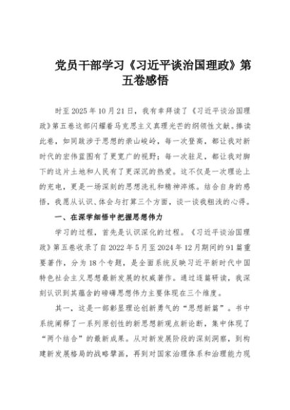 / 【七哥公文】2025年:党员干部学习《习近平谈治国理政》第五卷感悟+更多免费公文+VX:QiGeGongWen2024