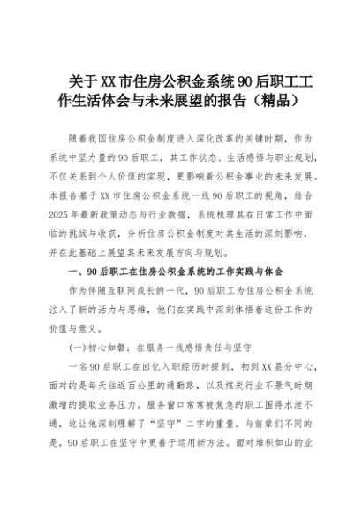 【七哥公文】2025年:关于XX市住房公积金系统90后职工工作生活体会与未来展望的报告(精品)+更多免费公文+VX:QiGeGongWen2024