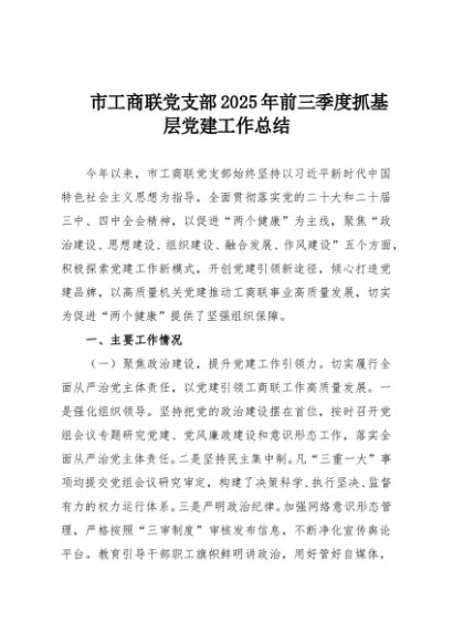 【七哥公文】2025年:市工商联党支部2025年前三季度抓基层党建工作总结+更多免费公文+VX:QiGeGongWen2024