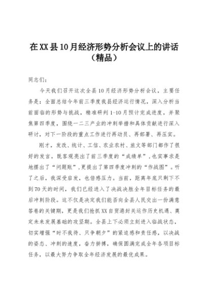 / 【七哥公文】2025年:在XX县10月经济形势分析会议上的讲话(精品)+更多免费公文+VX:QiGeGongWen2024